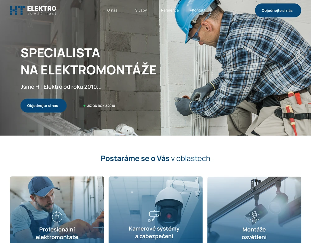 Jednostránková prezentace spoečnosti na elektromontáže a s tím související služby.