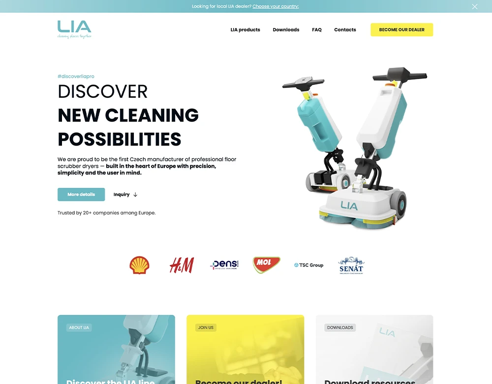 Produktový web české značky mycích strojů potřeba ve více jazykových verzích s možností uživatele přidávat a upravovat produkty.